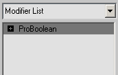 With an unmodified ProBoolean object selected, the modifier stack shows a single, expandable entry: ProBoolean.