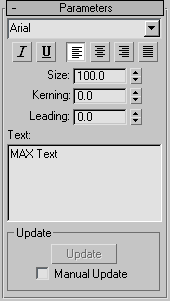Text shapes maintain the text as an editable parameter. You can change the text at any time. If the font used by your text is deleted from the system, 3ds Max still properly displays the text shape. However, to edit the text string in the edit box you must choose an available font.