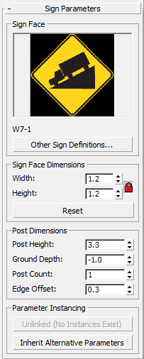 These controls activate only for parametric sign objects. They do not apply to parametric road-marking objects.