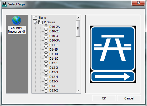 - Click to display a Select Sign dialog that lets you choose a sign object definition from any active Civil View Resource Kit.