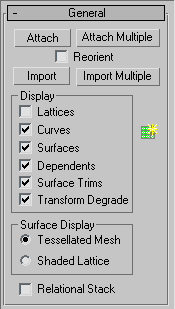 Nonrelational NURBS surfaces provide a way to improve the performance of NURBS with modifiers. These are controlled by the Relational Stack toggle on the General rollout for NURBS objects.