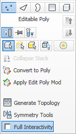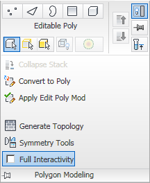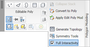 When on (the default), 3ds Max updates the viewport in real time as you use the mouse to manipulate the tool or change a numeric setting. With Cut and QuickSlice, when Full Interactivity is off, only the rubber-band line is visible until you click. Similarly, with numeric settings in caddies, the final result is visible only when you release the mouse button after changing the setting.