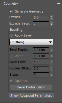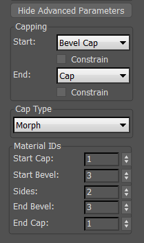 Use this group to apply individually selected materials to the Start Cap, Start Bevel, Sides, End Bevel, and End Cap.