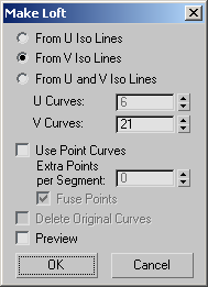This dialog converts a surface sub-object to a (dependent) U loft or UV loft surface. You can also change the dimension used to construct a U loft surface.