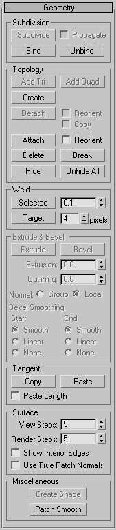 For information on the controls in this rollout, see Selection Rollout (Editable Patch).