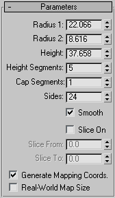If Radius 1 and 2 are the same, a cylinder is created. If the two radius settings are close in size, the effect is similar to applying a Taper modifier to a cylinder.