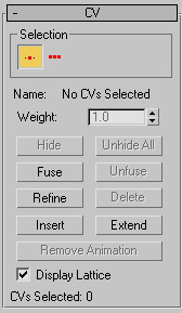 In addition to the CV rollout described here, the Curve CV sub-object level also displays the Soft Selection rollout.