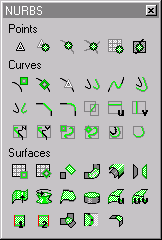 The toolbox contains buttons for creating NURBS sub-objects. In general, the toolbox behaves like this: