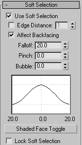 The controls in this dialog let you modify Soft Selection parameters. All sub-object levels share the same Soft Selection parameter values. Soft Selection is available for NURBS, mesh, poly, patch, and spline objects.