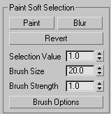 Paint Soft Selection lets you specify, blur, or revert a soft selection explicitly by dragging the mouse over the selection. This feature is available at sub-object levels with Editable Poly objects, as well as with objects with the Edit Poly or Poly Select modifier applied.