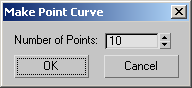 The Make Fit button for a NURBS curve sub-object turns a CV curve into a point curve. For point curves, it lets you change the number of points. It displays this dialog.