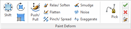 Paint Deform tools work the same way at the object level and at all sub-object levels, and are independent of any sub-object selection. To exit a Paint Deform tool, click its button again or right-click in the active viewport.