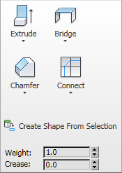 Note: To open the Extrude Edges dialog, choose Extrude Settings from the drop-down menu or Shift+click the Extrude button.
