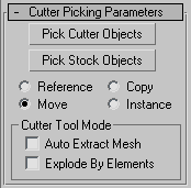 - On the Cutter Picking Parameters rollout, click Pick Stock Objects, and then select objects to be cut by the cutter objects.