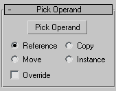 - When you click Pick Operand, the copy method you designate determines how the operands are used. When Move is the method, the original contour data is moved from the scene and into the operands of the new terrain object. Copy, Reference, and Instance retain the original contour data in the scene and create copies, references or instances of the contour data as operands in the terrain object. This is similar to the copy method for Boolean.
