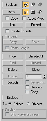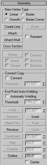 The radio buttons in this group let you determine the tangency of the new vertices created when you Shift+Clone segments or splines. If you later use Connect Copy, vertices on the splines that connect the original segment or spline to the new one will have the type specified in this group.