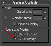 - Turn off Edged Faces, then on the General Controls rollout of the OpenSubdiv modifier, click the up arrow of the Iterations spinner to increase the value to 2.