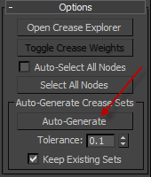 - Access the CreaseSet modifier in the stack, then expand the Options rollout and, in the Auto-Generate Crease Sets group, click the Auto-Generate button, then click the Yes button on the confirmation dialog that opens.