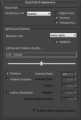 - Intensity/Fade Controls the intensity of the AO effect. The higher the value, the darker the shadows.