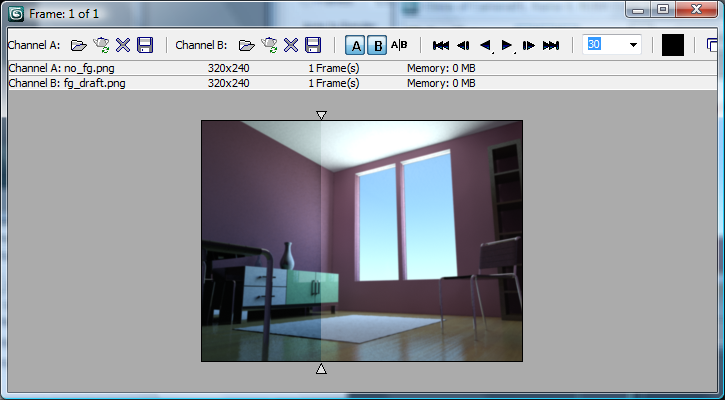 The RAM Player loads images and image sequences into RAM and displays them at different frame rates. The utility has two channels: A and B. You can load two different images or sequences into the channels to display or play back together, making it easy to compare them.