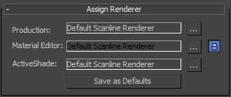 Click to save the current renderer assignments as defaults, so they will be active the next time you restart 3ds Max.