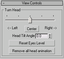 Note: The Turn Head and Head Tilt Angle controls use a Bezier controller for rotation of the walkthrough camera. If you create too many keys, or place them too closely together, you might get unexpected results. For best results, start at the beginning and add keys as you move to the end, creating as few keys as possible.