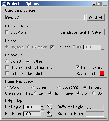 The two radio buttons are for scenes that have semitransparent objects, in which case more than one hit can be found for each ray. The remaining controls in this group are additional projection controls.