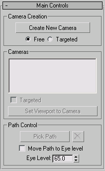 - Controls whether a selected camera in the Camera list is targeted or free. Turning on Targeted for a free camera will change it to targeted; turning it off for a targeted camera will change it to a free camera. Default=off.