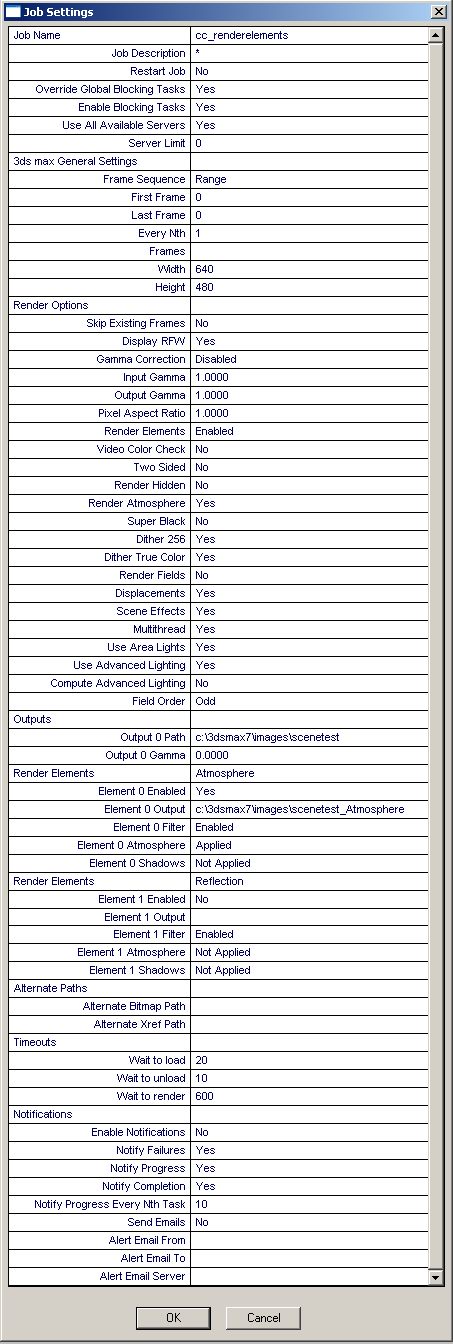 Use the Job Settings dialog to change job-related settings such as frame range, output size, and output directory, without having to use the Render Setup dialog and resubmit the job.