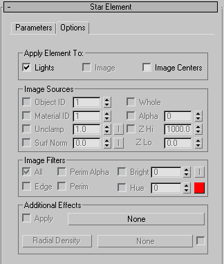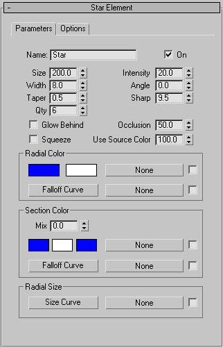 Star Element rollout, Parameters panel