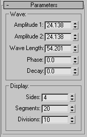 These options control the geometry of the Wave warp gizmo. In some cases, such as when the two Amplitude values differ, they change the effect of the wave.