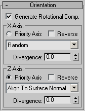 - Enables control over the orientation of particle seeds. The remaining settings on this rollout are available only when this checkbox is on.