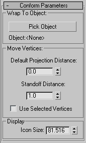 The Conform space warp modifies its bound object by pushing its vertices in the direction indicated by the space warp icon, until they hit a specified target object, or until the vertices move a specified distance from their original position.