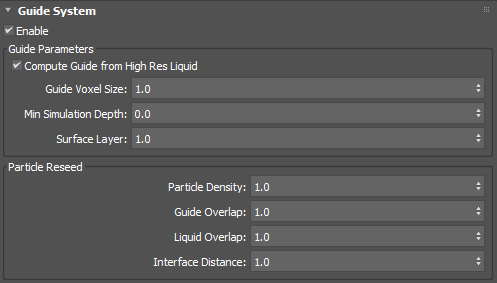 This rollout only appears when an existing guide mesh is selected in top or left pane (depending on whether the Simulation View layout is vertical or horizontal).