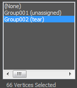 Shows all current groups along with each group's status: the type of constraint it's assigned to, or that it's unassigned. The number of selected vertices is shown below the list; when a group is highlighted, this is the same as the number of vertices assigned to the group. To assign, copy, paste, delete, or edit a created group, first highlight the group's name in the list.