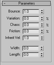 Controls the speed at which particles bounce off the deflector. At a setting of 1.0, particles bounce off the deflector at the same speed they struck it. At 0.0, particles do not bounce at all. At values between 0.0 and 1.0, particles bounce off the deflector at a speed reduced from their initial speed. At values greater than 1.0, particles bounce off the deflector at a speed greater than their initial speed. Default=1.0.