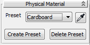 Choose a preset material from the drop-down list to change all values on the Physical Material Properties rollout to those saved in the preset, and apply those values to the selection.