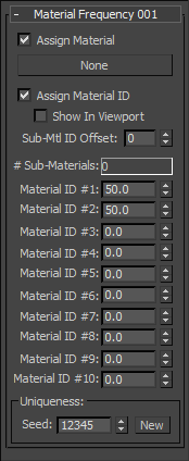 The actual sequence of material ID assignments is random, and can be varied by changing the Uniqueness Seed setting.
