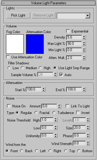 - Highlight Volume Light from the Atmospheres & Effects list and click setup to adjust the Volume Light parameters.