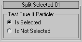 The Split Selected test lets you split the particle stream based on particles' selection status. For information about selecting particles, see Selection rollout.