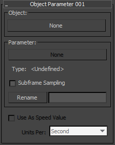 - The object from which to derive a parameter. Click this button and then select the object whose parameter you want to use. This adds the object to the suboperator and displays its name on the Object button. Use the Parameter setting (see following) to specify the parameter.