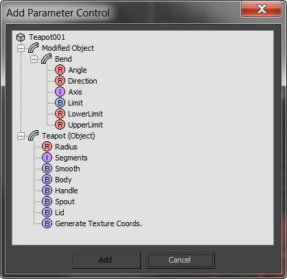 - The object parameter for the suboperator to use. After specifying the object (see preceding), click this button to open the Add Parameter Control dialog. Choose the parameter from the list in the dialog and click Add.