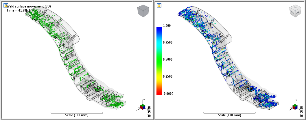- Switch to the Weld Surfaces view (Home > View Results > Weld Surfaces) to see how the weld surfaces were mapped to the structural model.