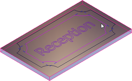 This section describes how to create the first profile toolpath, which applies to the offset vector and to the vector text. Use this toolpath to carve-out small amounts of material for the plaque's border and the