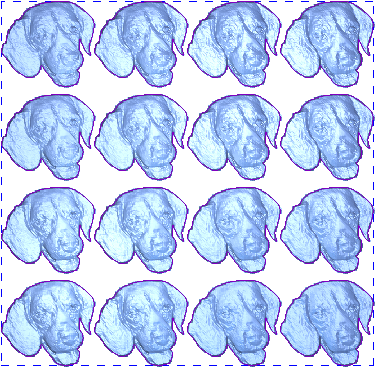 For example, copying a piece of relief clipart in four rows and columns with a 25 mm +X and +Y offset looks as follows: