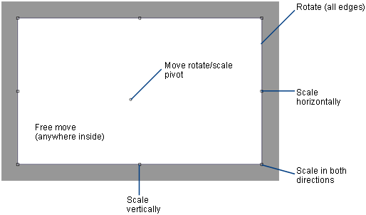 You can move, scale, or rotate an image layer relative to its canvas plane or relative to other image layers (if the canvas plane contains more than one image layer).