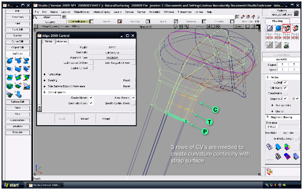 As an aside, I find that the "Align 2008" works better for this type of modeling approach, where as the new Align tool in AliasStudio 2009 works great on trimmed surface edges.