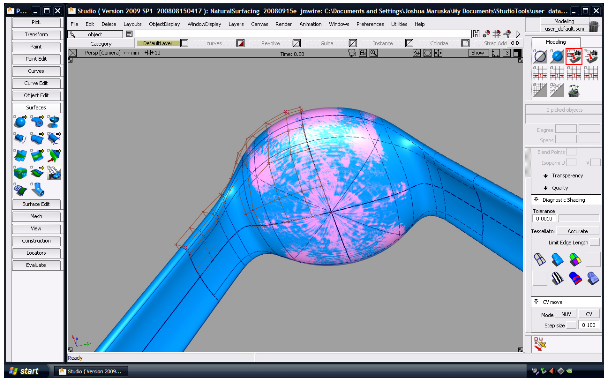 I hope this shows some of the advantages of working with this method of surface development. If this model had been constructed using several surfaces knitted together with little blends and transitions, it would have been very time consuming to make a broad sweeping change like this.