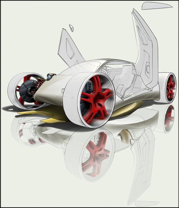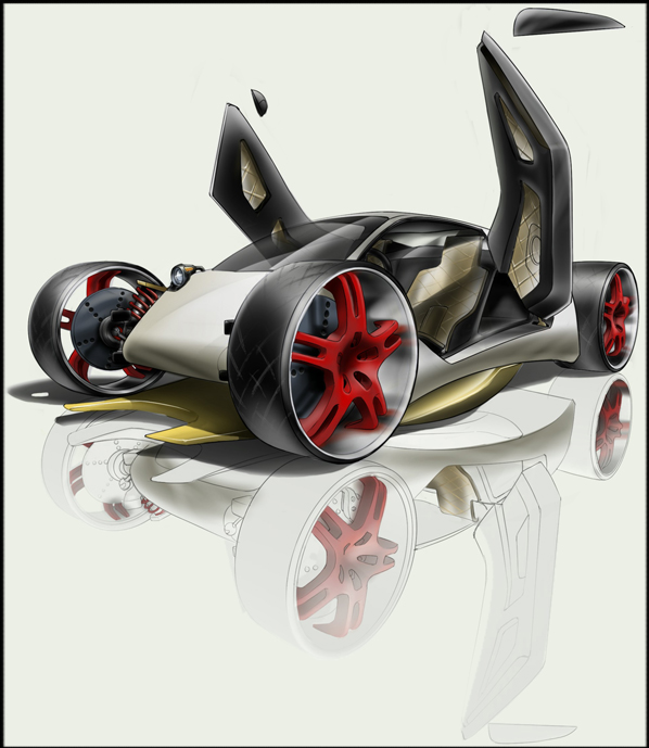 The goal for this project was to produce a fairly detailed sketch render of an open-wheel, mid engine sports car with deadly accurate perspective.