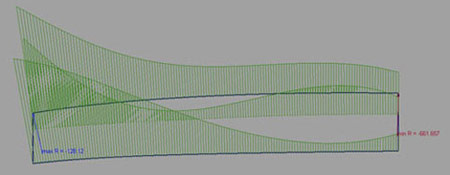 But as you can see in the next picture, the curvature plot shows the bad quality of both surfaces together. The curvature comes to a peak at the patch boundaries and the acceleration of the curvature within both surfaces is not homogenous at all.